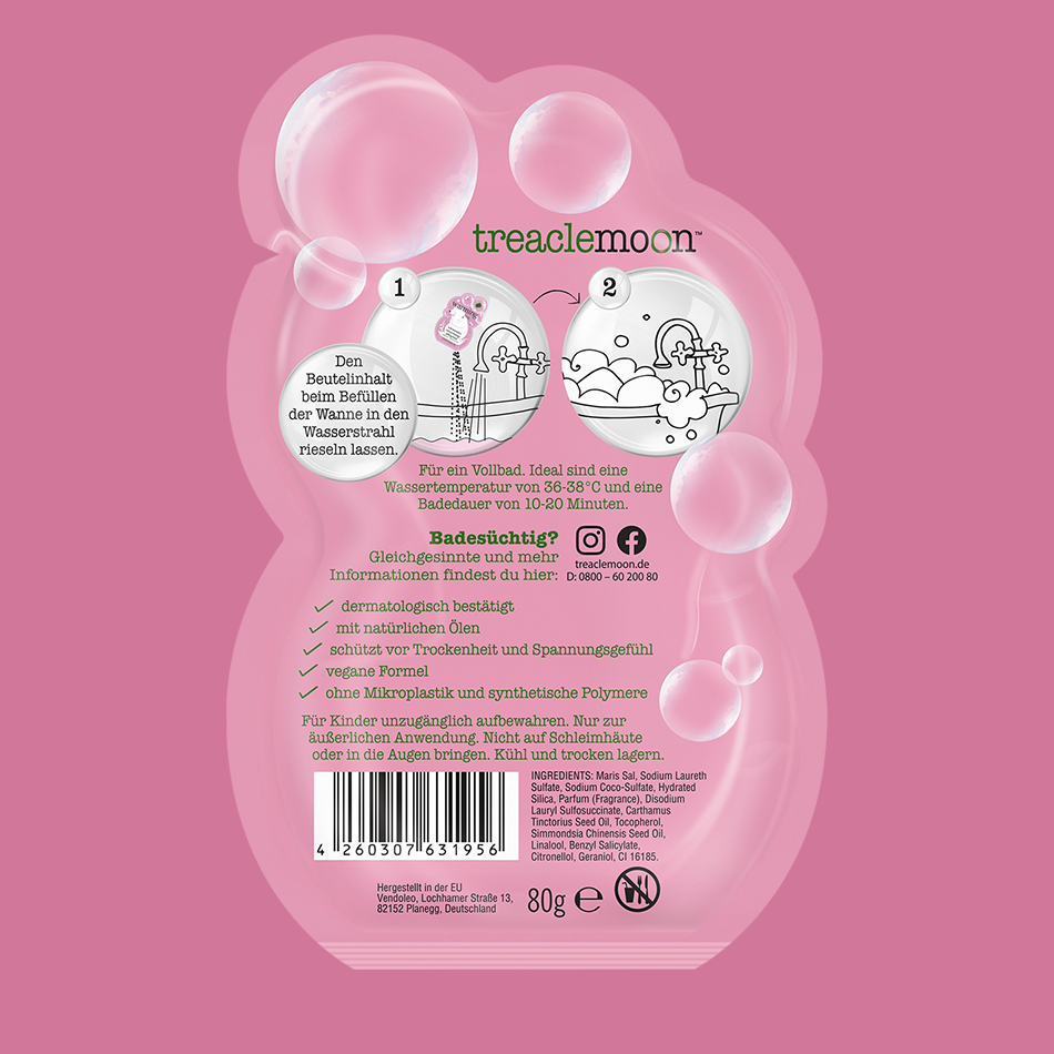 Neben wasserunlöslichen Mikroplastikteilchen gibt es auch wasserlösliche Partikel. Man nennt sie synthetische Polymere. Sie sind Teil von Flüssigkeiten, Wachsen oder Gelen und werden in Körperpflegeprodukten als Stabilisator oder Verdickungsmittel eingesetzt, um gleichzeitig die Produktqualität und -sicherheit zu gewährleisten. Bislang wurden synthetische Polymere nicht in Gewässern nachgewiesen und dennoch: Wir verzichten auf diese Stoffe und zwar so, dass die gewohnte Qualität der treaclemoon Lieblingsdüfte bestehen bleibt.